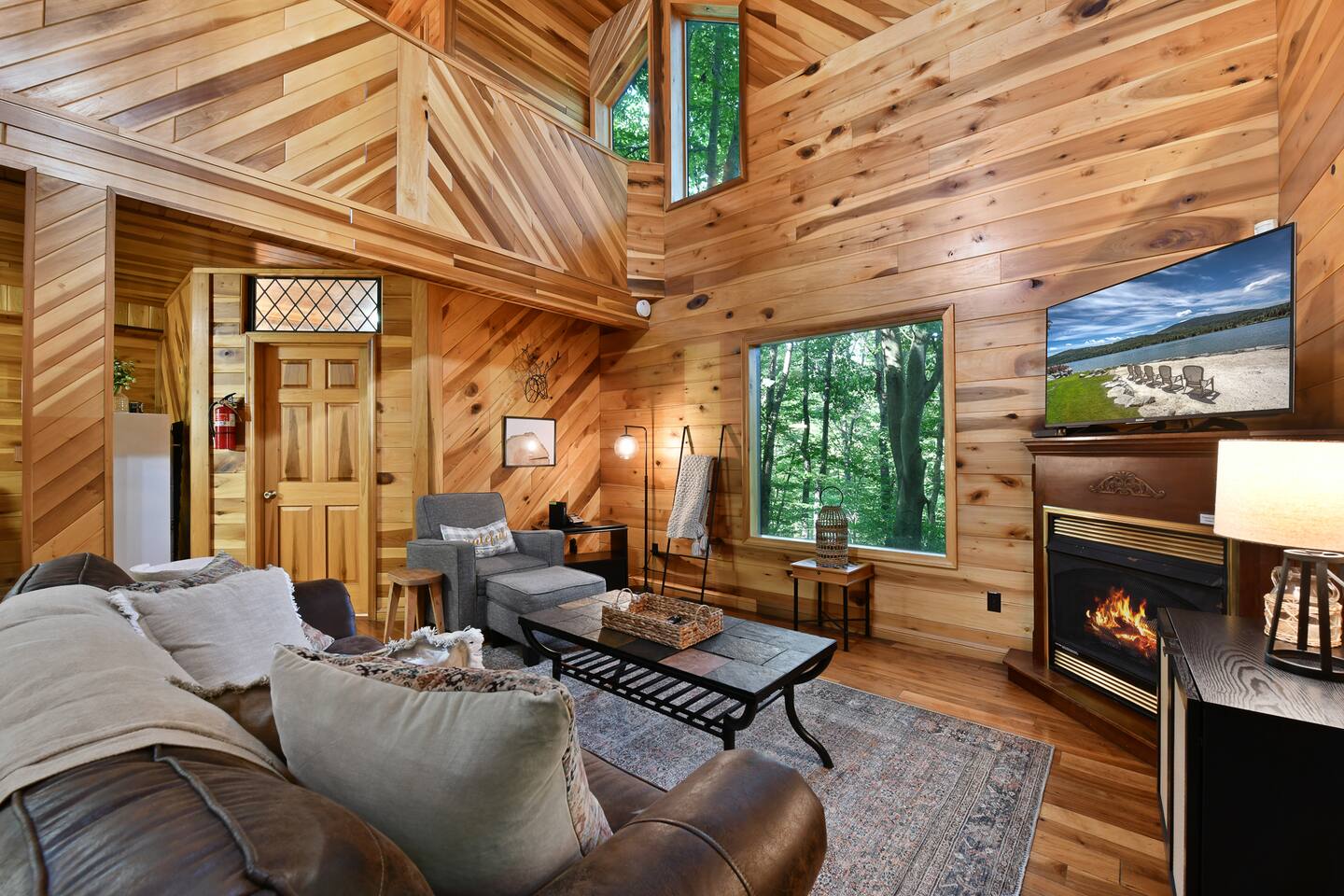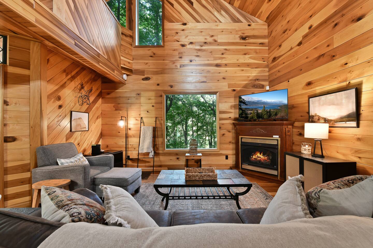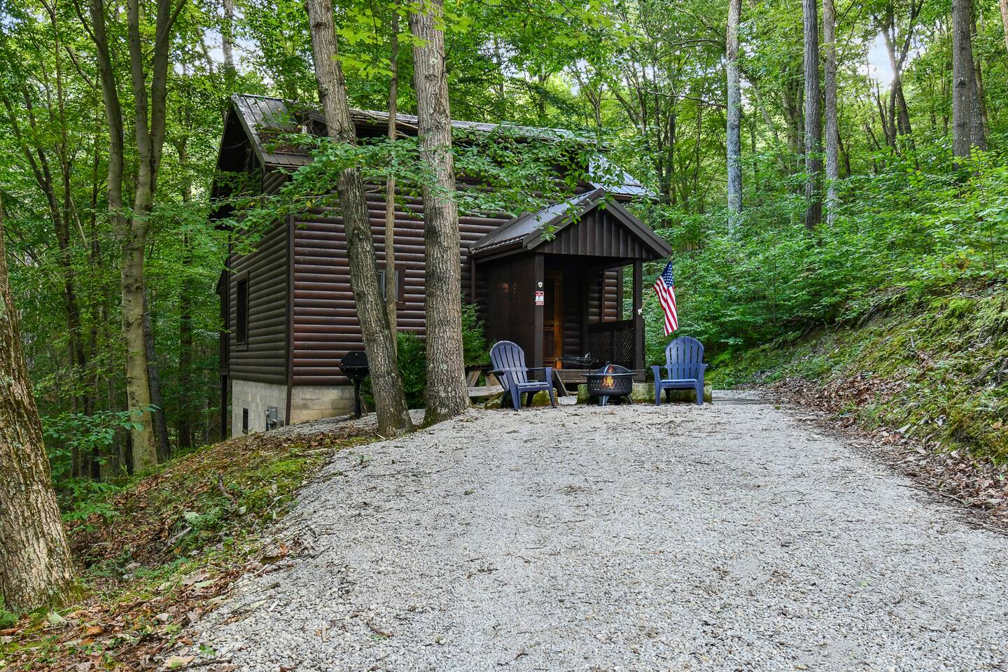 This beautiful one bedroom cabin is the perfect escape from the city! Nestled in the woods of Hocking Hills sits your next vacation spot! This secluded cabin is a 1 bedroom 2 bath with plenty of space to explore and enjoy each others company. Grill outside and enjoy the nature around you or head in to the full stocked kitchen to enjoy your meals. High speed internet allows you to cuddle up on the couch and stream your favorite movies or shows. Turn off the TV grab a glass of wine and enjoy your night in front of the fireplace! Head upstairs to the bedroom with a beautiful log bed and private bathroom! or out back to enjoy the hot tub and the sounds of nature all around you! Secluded in the woods but so close to all the amazing attractions Hocking Hills has to offer. Rock House is just 5 minutes away, Zip Lining, Hiking, Horseback riding all within 30 minutes of the cabin! We are pet friendly with a pet fee. Our driveway is steep, we recommend using 4WD cars only in the winter months. Check out what some of our guests have said: "Loved it! Can’t wait to stay again!" "Charming little spot in the woods and very close to some amazing hikes! We stopped here on our way through the area and wished we could’ve stayed longer! Very relaxing vibe and very clean, hot tub was a bonus. If we’re ever in the area again we will look to book here!" "SO PRETTY. It’s perfect cabin but modern and updated vibes. The hot tub was dreamy!" "This was the best couples cabin my husband and I have stayed at in hocking hills! Clean, private, and cozy, this place had everything we needed. Rock House, conkle’s hollow, and old man’s cave are close drives. The views all around the cabin are beautiful and we enjoyed many walks with our dog. We would definitely choose this cabin again!"