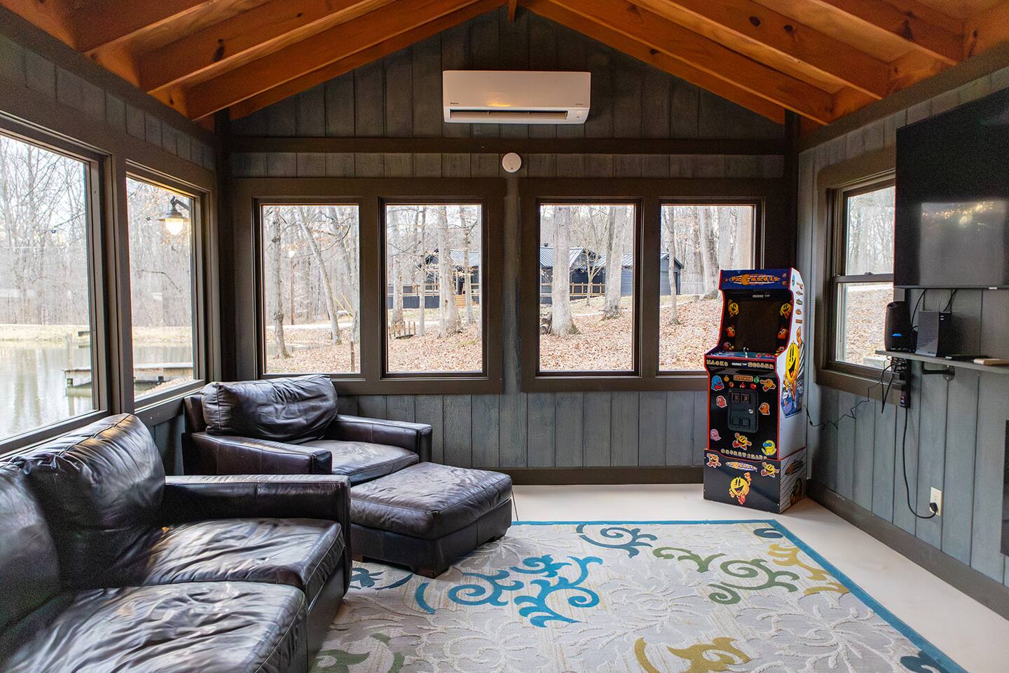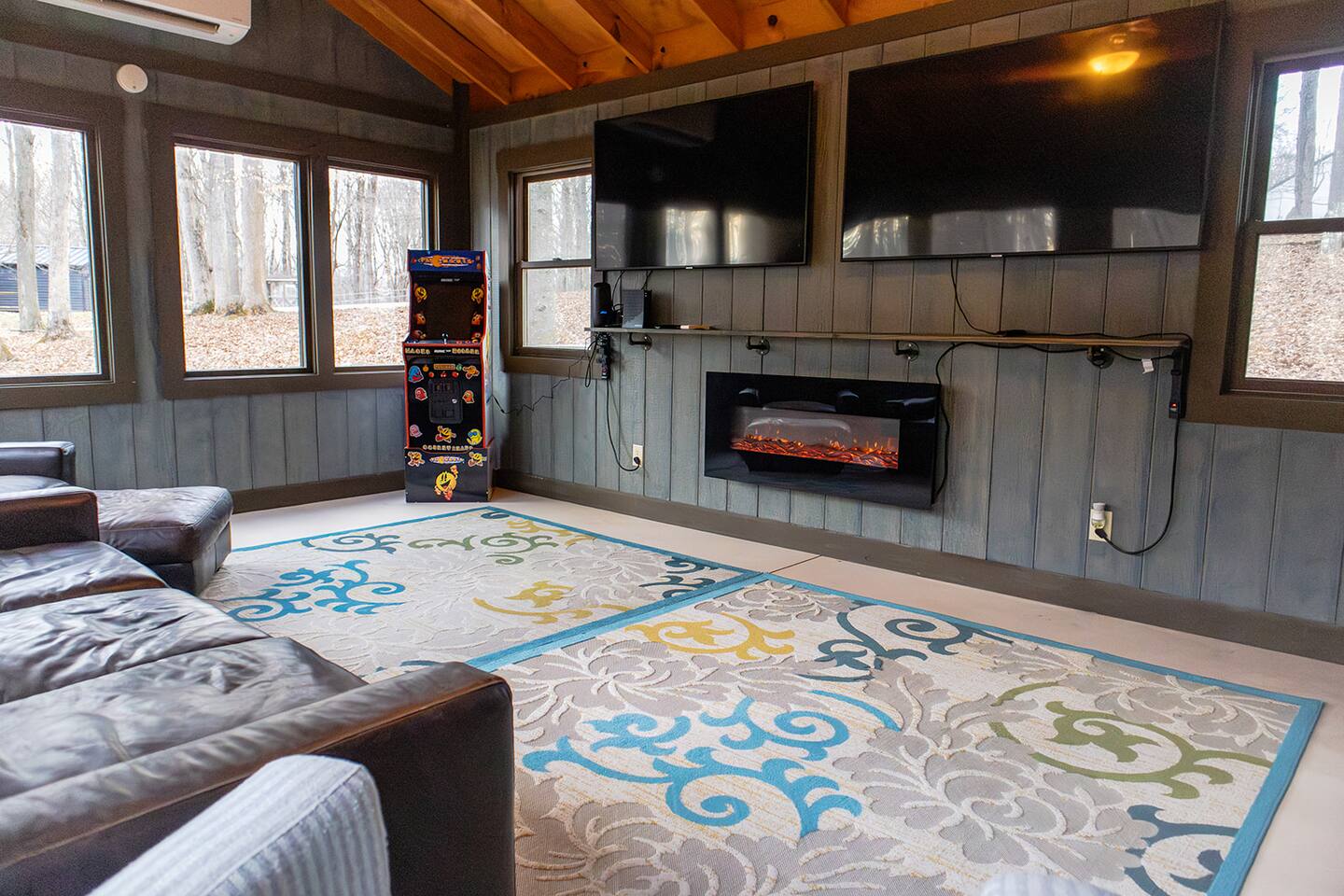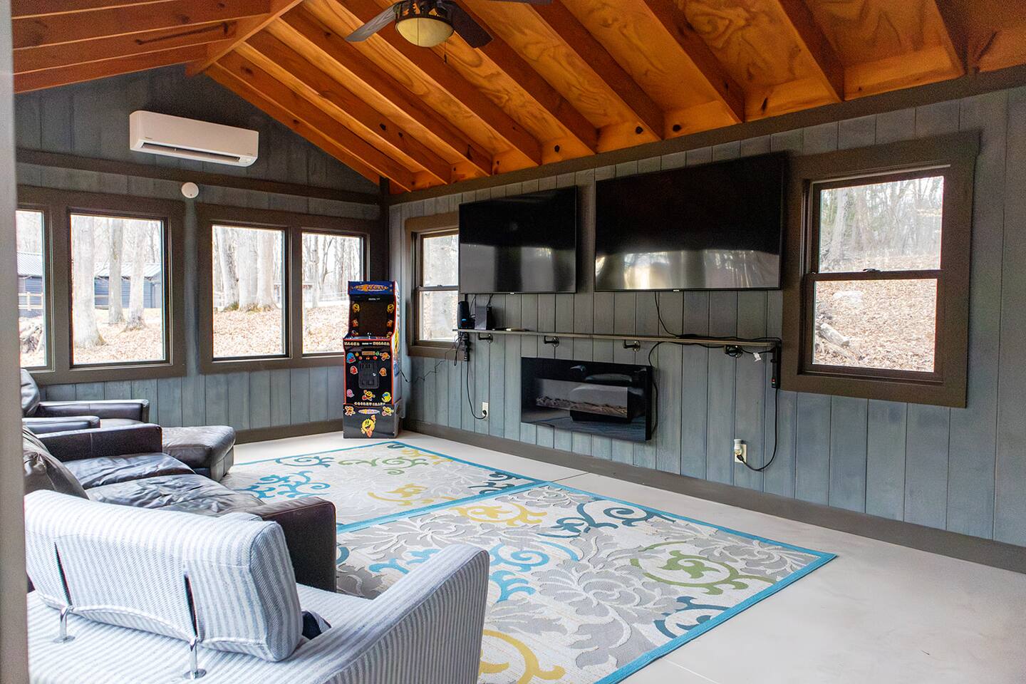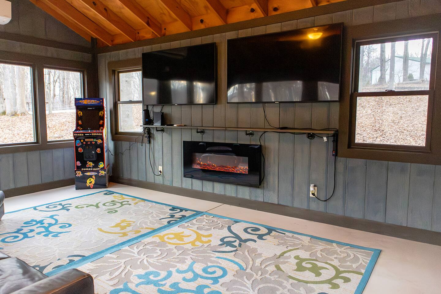 Welcome to Mack's Holler! This unique and beautiful oasis is ready to host you and your group! With a large main cabin and separate lake house, there's room for everyone to hang out and be comfortable! When you drive down the driveway you see the beautiful private, stocked, pond on your right and the main cabin up ahead! With plenty of parking you can pull up and whether you have a boat with you or multiple cars, rest assured, there's room! When you walk around the big wrap around deck, you're greeted by the huge, bluetooth speaker incorporated hot tub, perfect to relax in after a day exploring Buckeye Lake! When you walk inside, the open concept with tons of natural light greets you. Have to work from home!? We got you covered with a dedicated desk area. Want to relax and cozy up by the fire!? No problem! With a reclining sofa and loveseat, we got you covered! We also have an electric fireplace with color changing and heat settings! The kitchen is large and open so entertaining is made super easy! With bar seating and a dining area with room for 8, family meals are a piece of cake! Master bedroom is large with a door out to the deck and a private luxury shower and bathtub! The bathroom has a rainfall shower and a bathtub thats perfect to soak and relax! A pillow like king bed and a smart TV in this room as well! Another full bathroom with full body shooting jets. Full laundry room for you to use during your stay. Don't forget to check out the garage! We have a ping pong table to enjoy as well! Down the hall we have another bedroom with twin over full bunk bed with a twin trundle and a smart tv and just a bit farther another king size bed! When you head outside and across the bridge, the lake house welcomes you with a HUGE beautiful deck, a fishing dock, a grill and so much more! Inside the lake house we have 2 large TVS to stream your favorite movie, football game, or anything else! An arcade system, a wet bar, and a 1/2 bathroom. We also have a firepit area to make some S'Mores! Whether you're looking to entertain friends or family, this will definitely be the hottest hang out spot! The pond is safe to swim in and does get very deep in the middle, so please swim at your own risk, there is no lifeguard on duty. It is a stocked pond so feel free to reel 'em in, but please make sure to throw them back! Mack's Holler is the perfect place to get everyone together and have an awesome time! Not to mention we are within 15-20 minutes of all the Buckeye Lake hot spots! AND Legend Valley! We are pet friendly with a pet fee! For more pics check out @ccs_retreats on IG