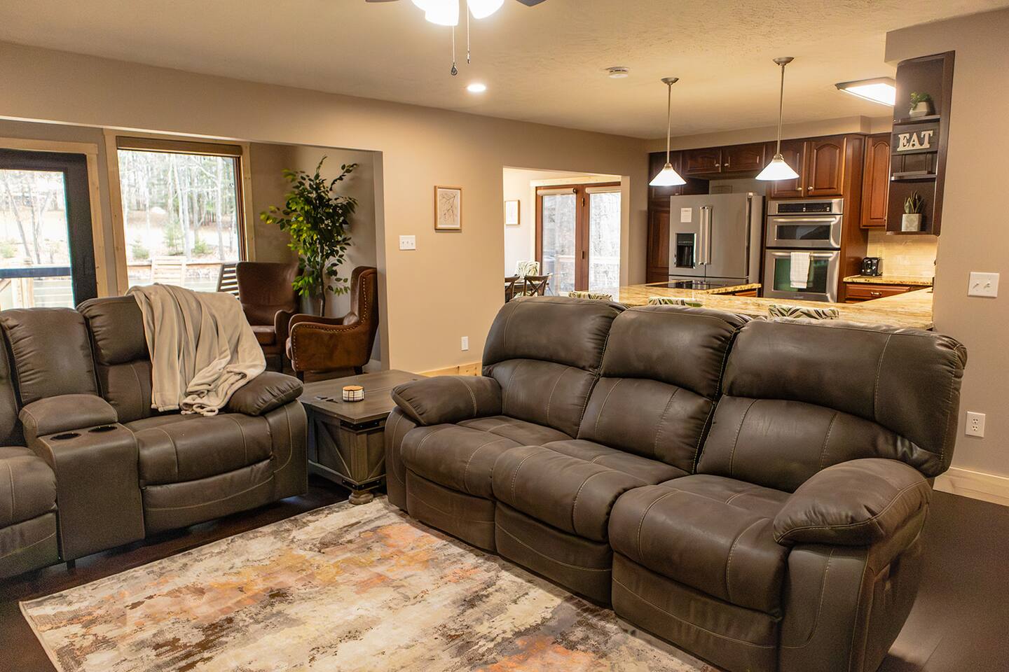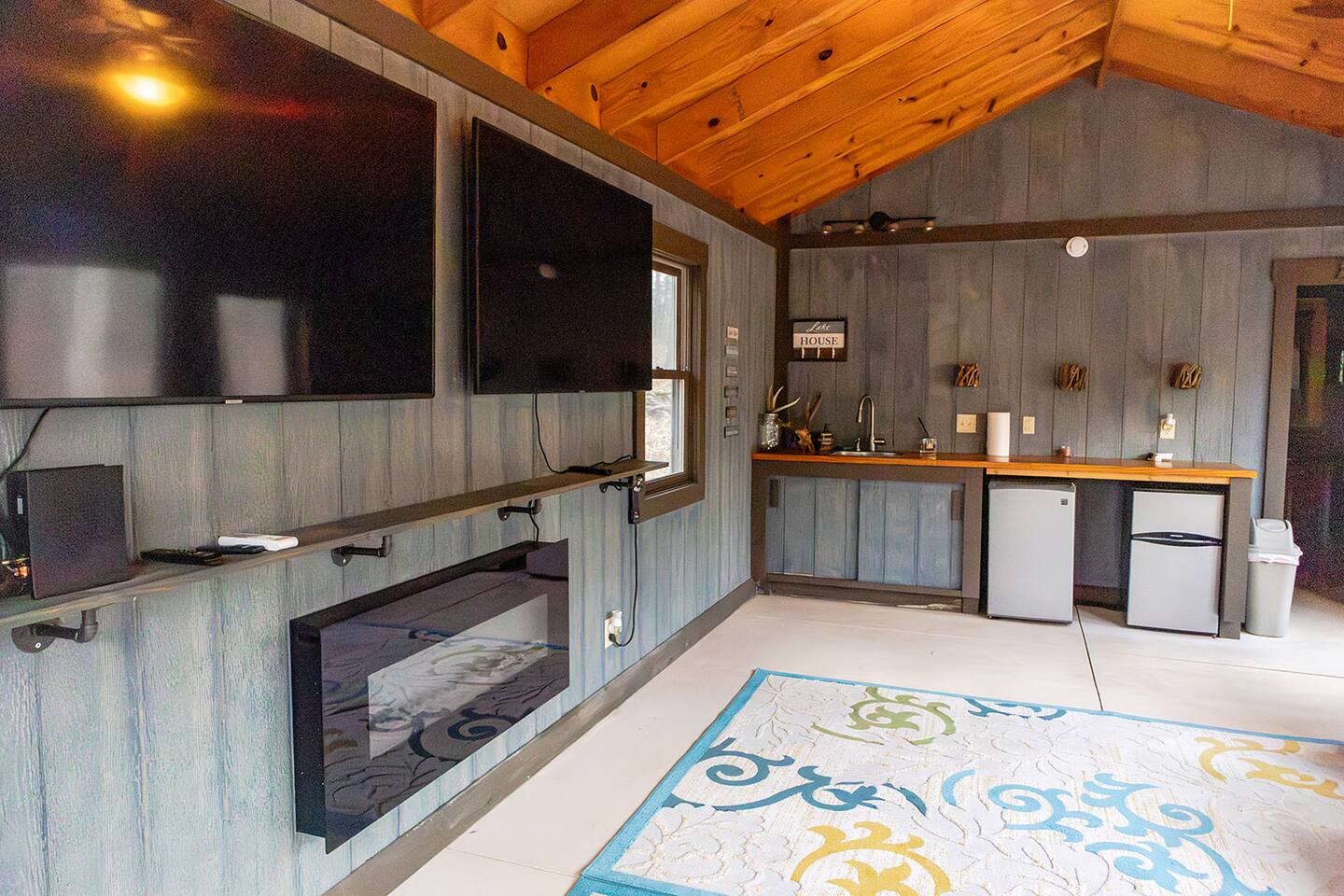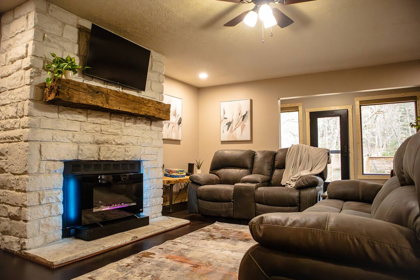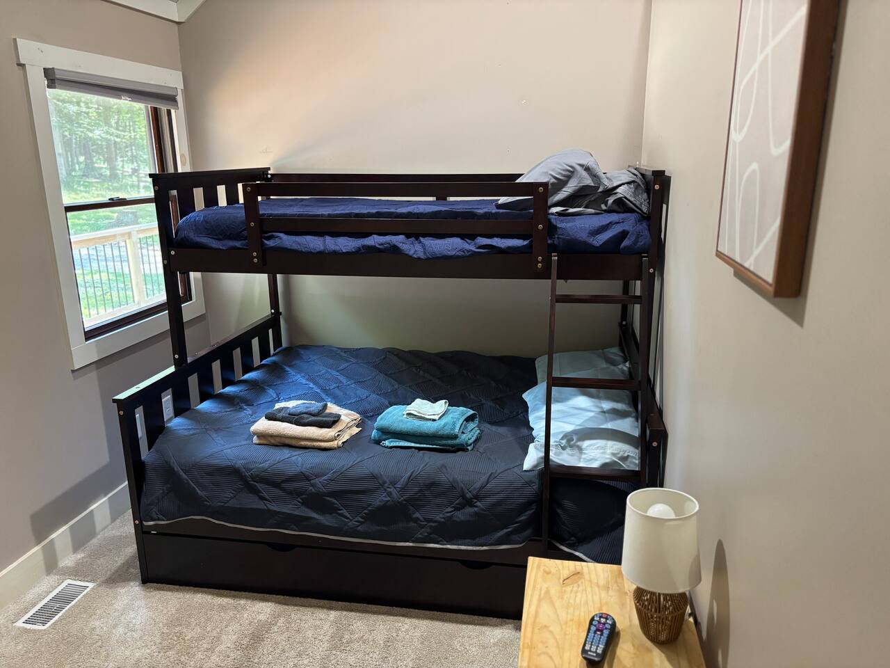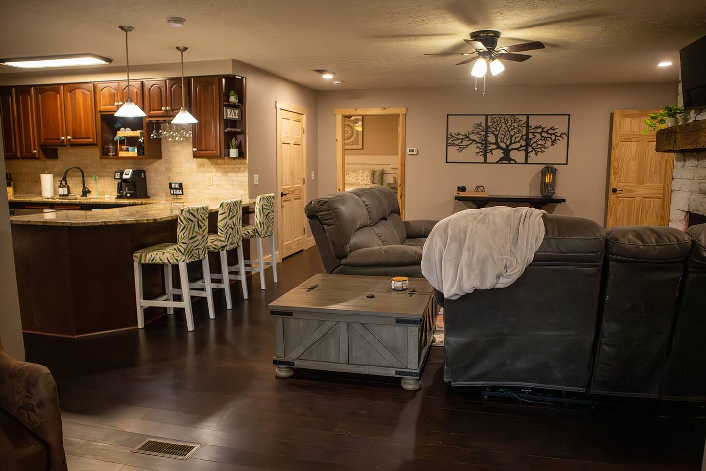 Welcome to Mack's Holler! This unique and beautiful oasis is ready to host you and your group! With a large main cabin and separate lake house, there's room for everyone to hang out and be comfortable! When you drive down the driveway you see the beautiful private, stocked, pond on your right and the main cabin up ahead! With plenty of parking you can pull up and whether you have a boat with you or multiple cars, rest assured, there's room! When you walk around the big wrap around deck, you're greeted by the huge, bluetooth speaker incorporated hot tub, perfect to relax in after a day exploring Buckeye Lake! When you walk inside, the open concept with tons of natural light greets you. Have to work from home!? We got you covered with a dedicated desk area. Want to relax and cozy up by the fire!? No problem! With a reclining sofa and loveseat, we got you covered! We also have an electric fireplace with color changing and heat settings! The kitchen is large and open so entertaining is made super easy! With bar seating and a dining area with room for 8, family meals are a piece of cake! Master bedroom is large with a door out to the deck and a private luxury shower and bathtub! The bathroom has a rainfall shower and a bathtub thats perfect to soak and relax! A pillow like king bed and a smart TV in this room as well! Another full bathroom with full body shooting jets. Full laundry room for you to use during your stay. Don't forget to check out the garage! We have a ping pong table to enjoy as well! Down the hall we have another bedroom with twin over full bunk bed with a twin trundle and a smart tv and just a bit farther another king size bed! When you head outside and across the bridge, the lake house welcomes you with a HUGE beautiful deck, a fishing dock, a grill and so much more! Inside the lake house we have 2 large TVS to stream your favorite movie, football game, or anything else! An arcade system, a wet bar, and a 1/2 bathroom. We also have a firepit area to make some S'Mores! Whether you're looking to entertain friends or family, this will definitely be the hottest hang out spot! The pond is safe to swim in and does get very deep in the middle, so please swim at your own risk, there is no lifeguard on duty. It is a stocked pond so feel free to reel 'em in, but please make sure to throw them back! Mack's Holler is the perfect place to get everyone together and have an awesome time! Not to mention we are within 15-20 minutes of all the Buckeye Lake hot spots! AND Legend Valley! We are pet friendly with a pet fee! For more pics check out @ccs_retreats on IG