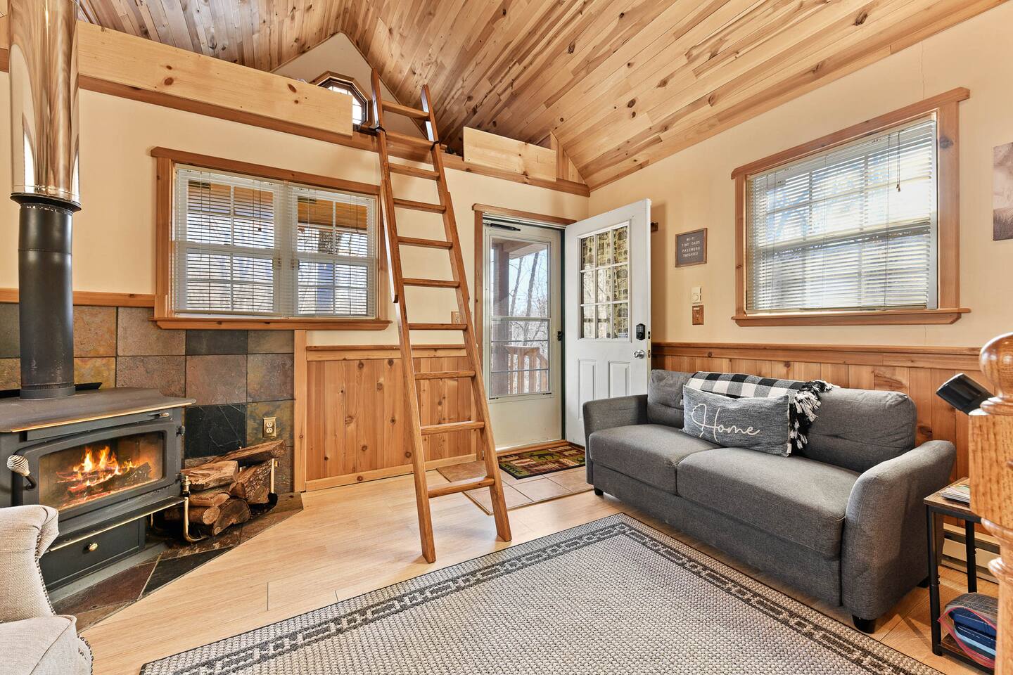 Escape to your own private oasis in the heart of Hocking Hills with our enchanting tiny house retreat. Tucked away on 5 secluded acres of pristine woodland, this charming tiny house offers the perfect blend of rustic charm and modern comfort for an unforgettable nature getaway. Outside, the magic of nature awaits. Relax and unwind in the soothing waters of the private hot tub, where you can soak under the starlit sky and listen to the symphony of the forest. Gather around the fire pit and roast marshmallows as you share stories and laughter with friends and family. Head up the stairs to the deck where you can enjoy your morning coffee or evening sunsets looking out over the acreage. Inside you'll find the cute living room with a wood burning stove to enjoy after a long day enjoying the nature! A fully equipped kitchen including a refrigerator, stove, oven, microwave, pots and pans, dishes, a drip coffee maker with coffee and filters. Up the ladder to the loft area with a twin size bed for your extra guests. Head down the winding staircase to the master suite. Beautiful french doors open and hear the sounds of nature or cozy up in the reading nook with a good book. Has a smart tv for your enjoyment while staying indoors. While outside, feel free to explore around the property, take a quick skip over the stream or head down the nature trail. There is NO hunting on the property by guests. When you're ready to head out for some additional hiking you can head to Old Man's Cave and other Hocking Hills hiking destinations. Want something more thrilling? Head to the zip lines, canoes, horseback riding and more at Hocking Hills Adventures just 20 minutes down the road. We are pet friendly with a pet fee Check out what some of our guests have said: "The property and setting are ideal for a quiet and restful getaway. It is close enough to various places of interest or you can just enjoy the view from the front porch for days. Thank you. We hope to return again for another stay." "What a great location!! My husband and I travelled to this area to experience Hocking Hills in the fall! We really enjoyed our stay! The spiral stair case was a super cool feature. If you open the blinds in the lower room, you can see the sunrise in the morning from bed! The property was beautiful and the trails were nice for morning/evening potty breaks for our dog! It’s only a short drive to Hocking Hill State Park, where we spent a good portion of our time exploring the caves and falls. We would definitely recommend this tiny oasis!!" "Very cozy home, beautiful property surrounding" "Nice little retreat. Very quiet, secluded and surrounded by nature." For more pics check out @ccs_retreats on IG